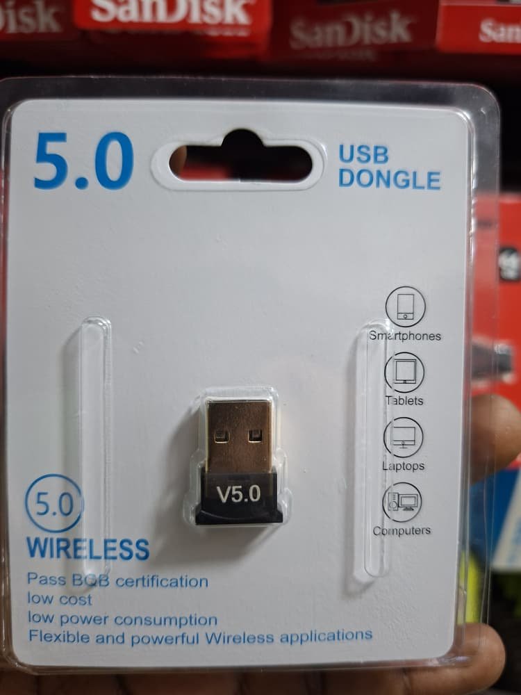 Adaptateur USB Bluetooth V5.0 ultra-compact. Faible consommation, haute compatibilité (PC, laptop, smartphone) et connexion sans fil stable pour tous vos périphériques.