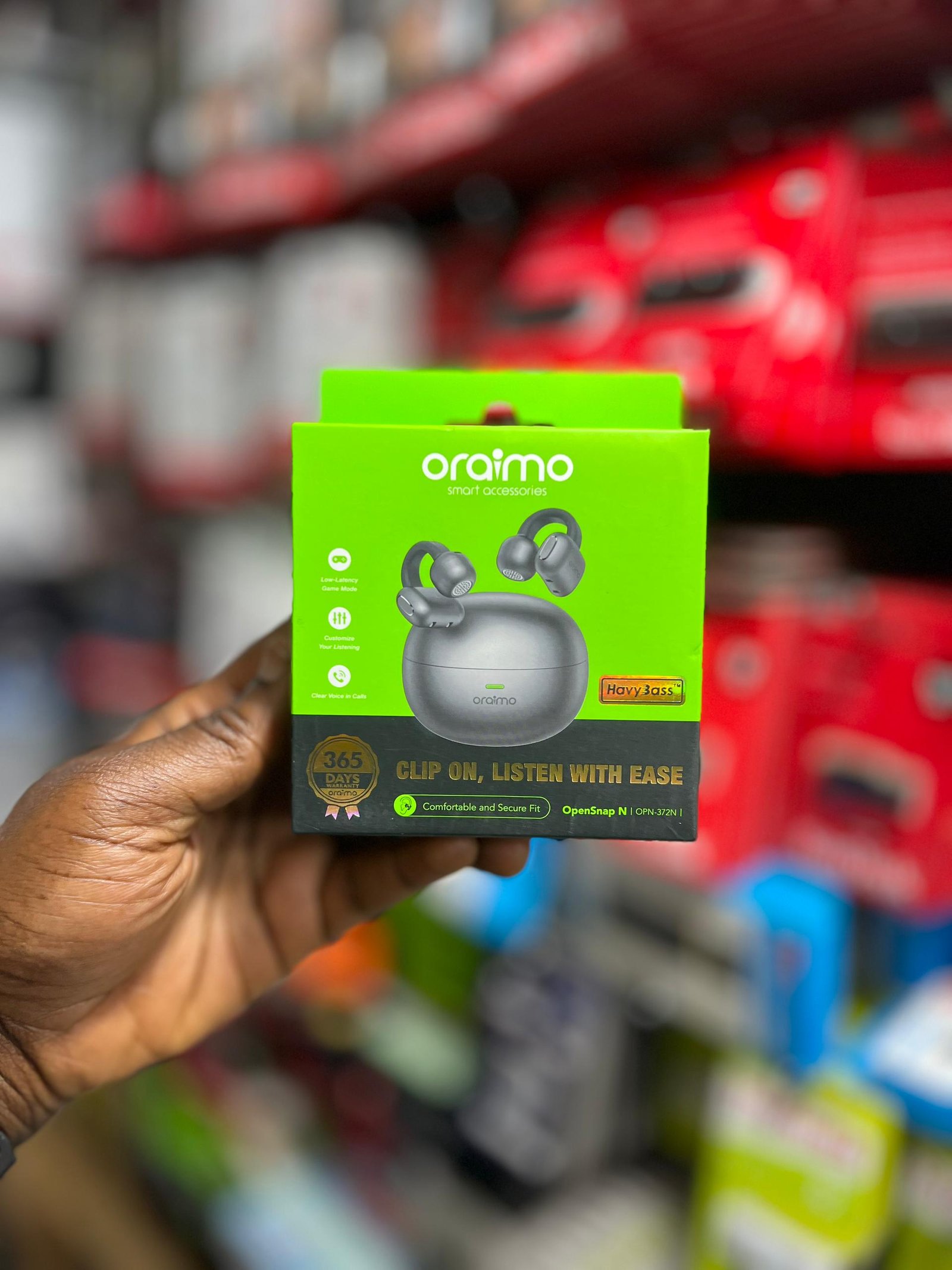 Corps de Texte : « Découvrez les écouteurs sans fil Oraimo OpenSnap N, l’accessoire intelligent idéal pour les sportifs et les utilisateurs actifs. Leur design innovant Clip-On (à clipser) assure un maintien confortable et sécurisé, vous permettant de bouger sans craindre de les perdre. Profitez d’une qualité audio exceptionnelle grâce à la technologie Heavy Bass™ d’Oraimo, qui délivre des basses profondes et puissantes. Ces écouteurs sont parfaits pour les appels grâce à leur micro intégré garantissant une clarté vocale optimale, même en mode ‘Game Mode’. De plus, achetez en toute confiance : ce produit bénéficie de la Garantie Oraimo de 365 jours, un gage de fiabilité et de durabilité. »