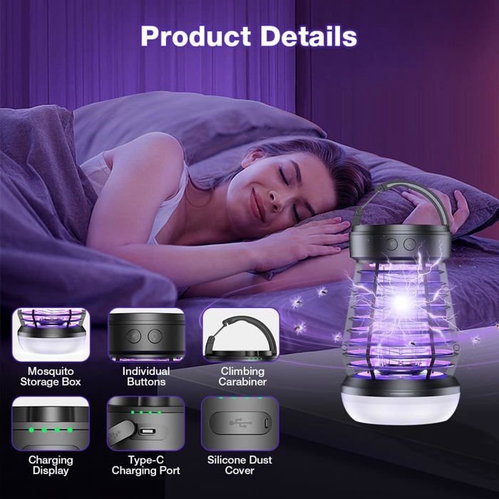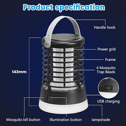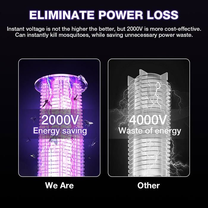 - Piégeage Efficace : Utilise une technologie de piégeage à fréquence variable (Variable frequency trapping) et un choc électrique puissant (Strong electric shock) pour éliminer les moustiques.