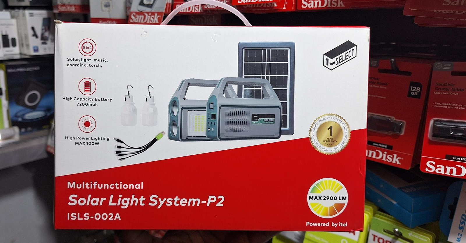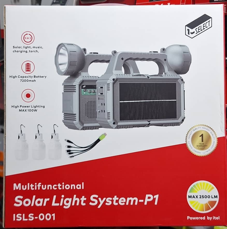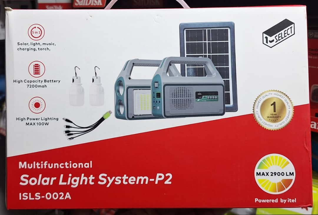 Le système d’éclairage solaire SELECT P1 et P2 est la solution ultime pour faire face aux coupures d’électricité ou pour le camping, une nécessité pour chaque foyer au Cameroun, sélectionné par Memong Store. Ce produit 5-en-1 combine les fonctionnalités essentielles : Solaire, Lumière, Musique, Charge et Torche.