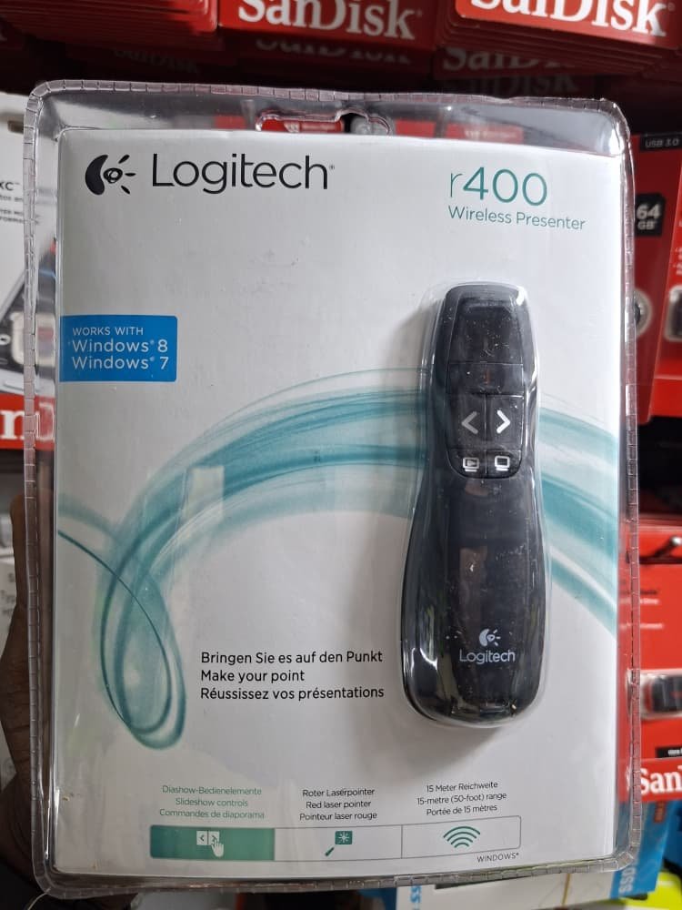 Le Logitech R400 est un présentateur sans fil simple et efficace. Il offre une portée de 15 mètres, un pointeur laser rouge et des commandes de diaporama intuitives.